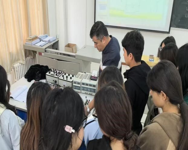 课程中,吐尔逊·买买提充分利用多媒体设备,系统讲解了实验目的、实验仪器、实验原理和实验方法。重点对实验原理进行讲解,通过详细的推导过程,帮助学生深入理解电动势、电源内阻、端电压和电流等核心概念。这种理论与实践相结合的教学方式,极大地提高了学生的学习兴趣和理解能力。在实验操作环节,吐尔逊·买买提通过示范操作过程,详细讲解实验方法,确保学生能够理论联系实际。他认真指导每一个小组进行实验,确保每个小组都能准确无误地完成实验,并得出正确的实验结果。在他的指导下,每一名学生都动手操作,不仅掌握了实验理论,还提升了实践操作能力。