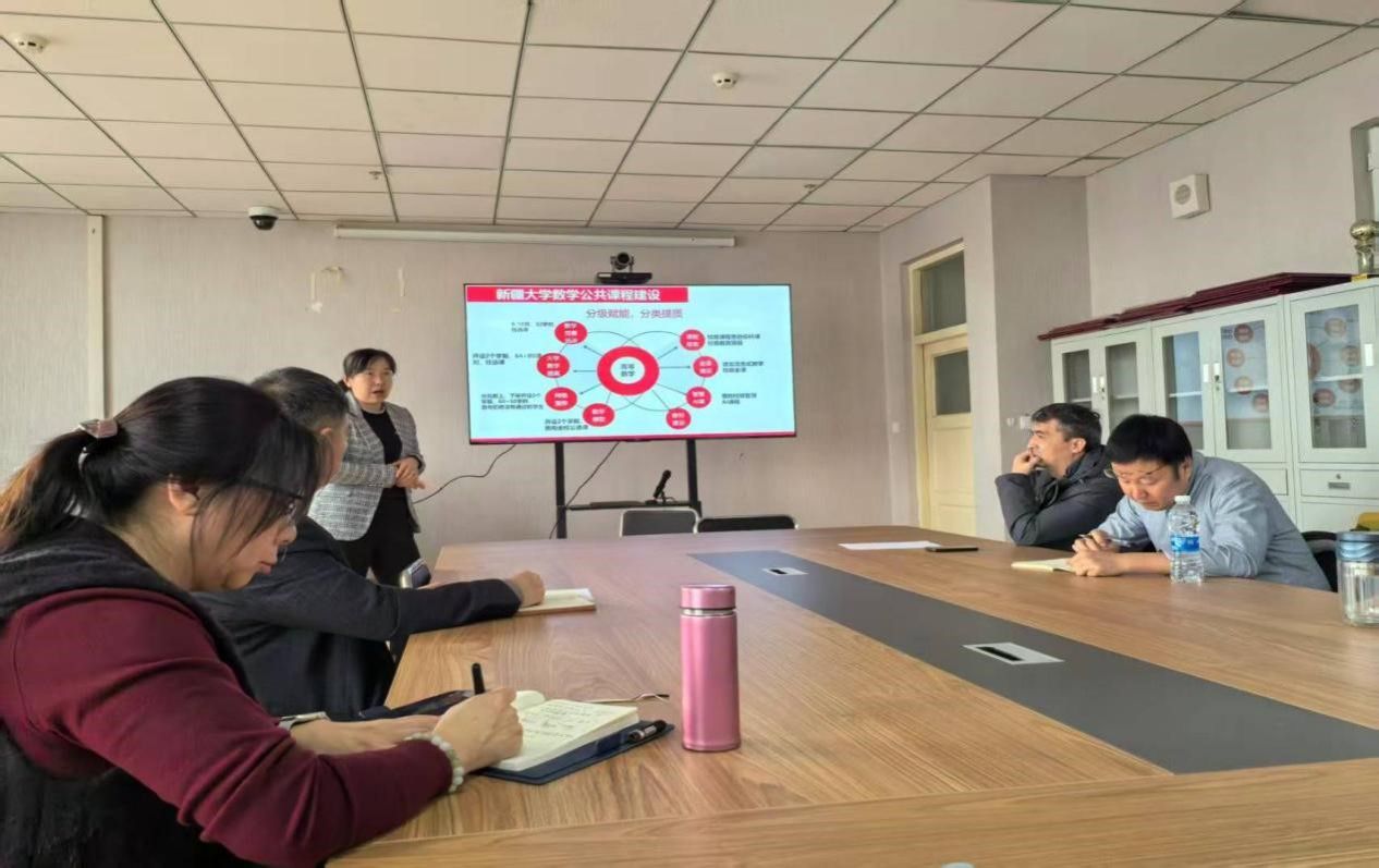 为进一步推进数学公共课程建设、深化教学改革与人才培养,提升师生学术素养与竞赛能力,数理学院于11月20日举办学术交流活动,特别邀请新疆大学数学与系统科学学院数学教育研究中心侯江霞老师与魏建杰老师担任主讲嘉宾,数理学院师生代表参与交流。