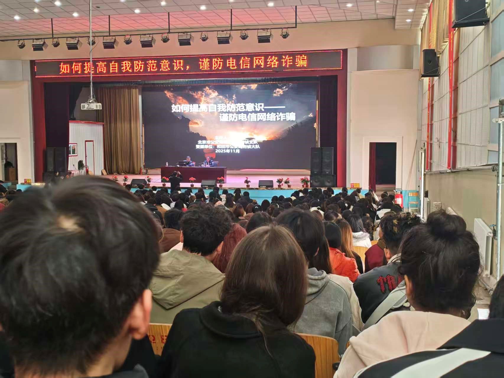 为深入贯彻“打防结合,以防为主”的反诈工作方针,切实提升在校学生防范电信网络诈骗的意识与识骗能力,11月12日,数理学院在南校区礼堂开展“谨防电信网络诈骗,筑牢青春安全线”专题讲座。活动特邀援疆干部北京市公安局通州分局刑侦支队警官于淼担任主讲人,数理学院2024级全体学生聆听讲座。